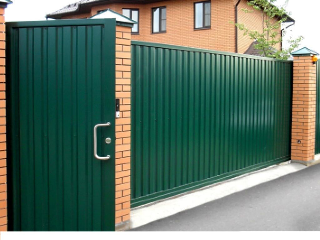 Откатные ворота из профнастила на винтовых сваях (цена на бетонном основании +20000р)