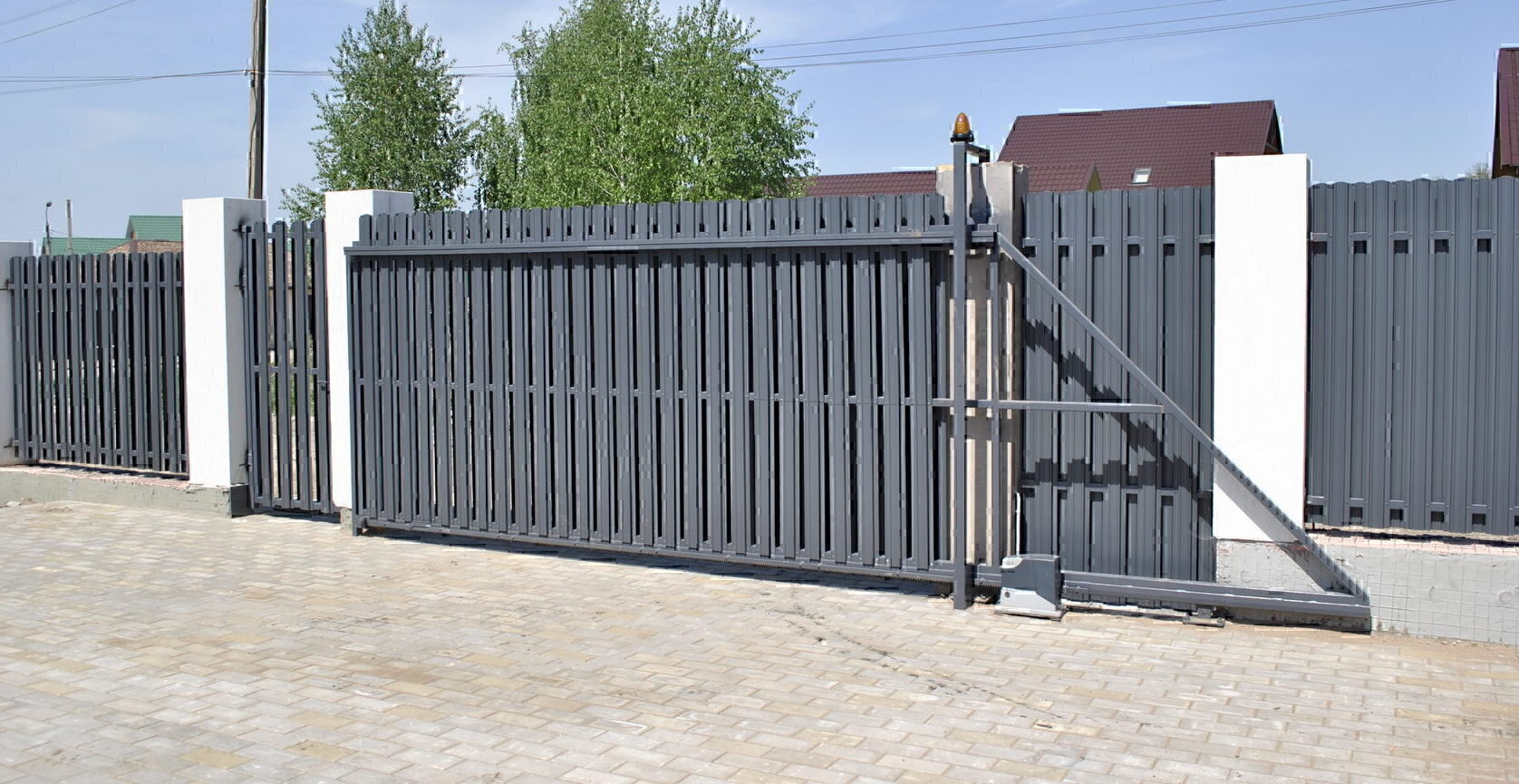 Откатные ворота из евроштакетника на винтовых сваях (цена на бетонном основании +20000р)