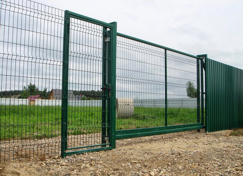 Откатные ворота из 3Д-гиттер на винтовых сваях (цена на бетонном основании +20000р)